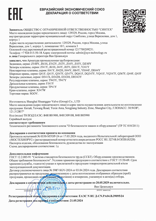 雙高閥門獲得俄羅斯EAC海關聯盟認證